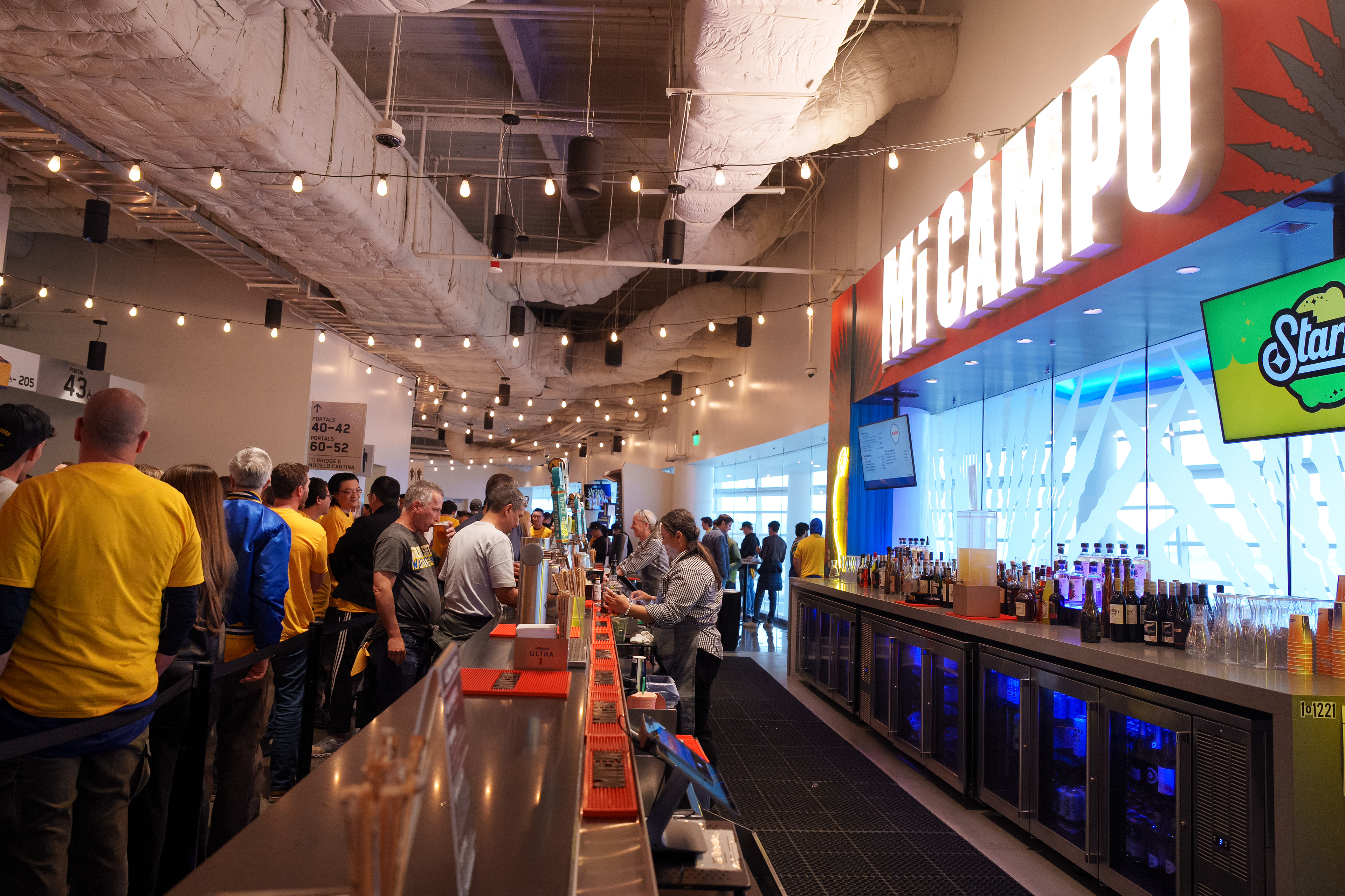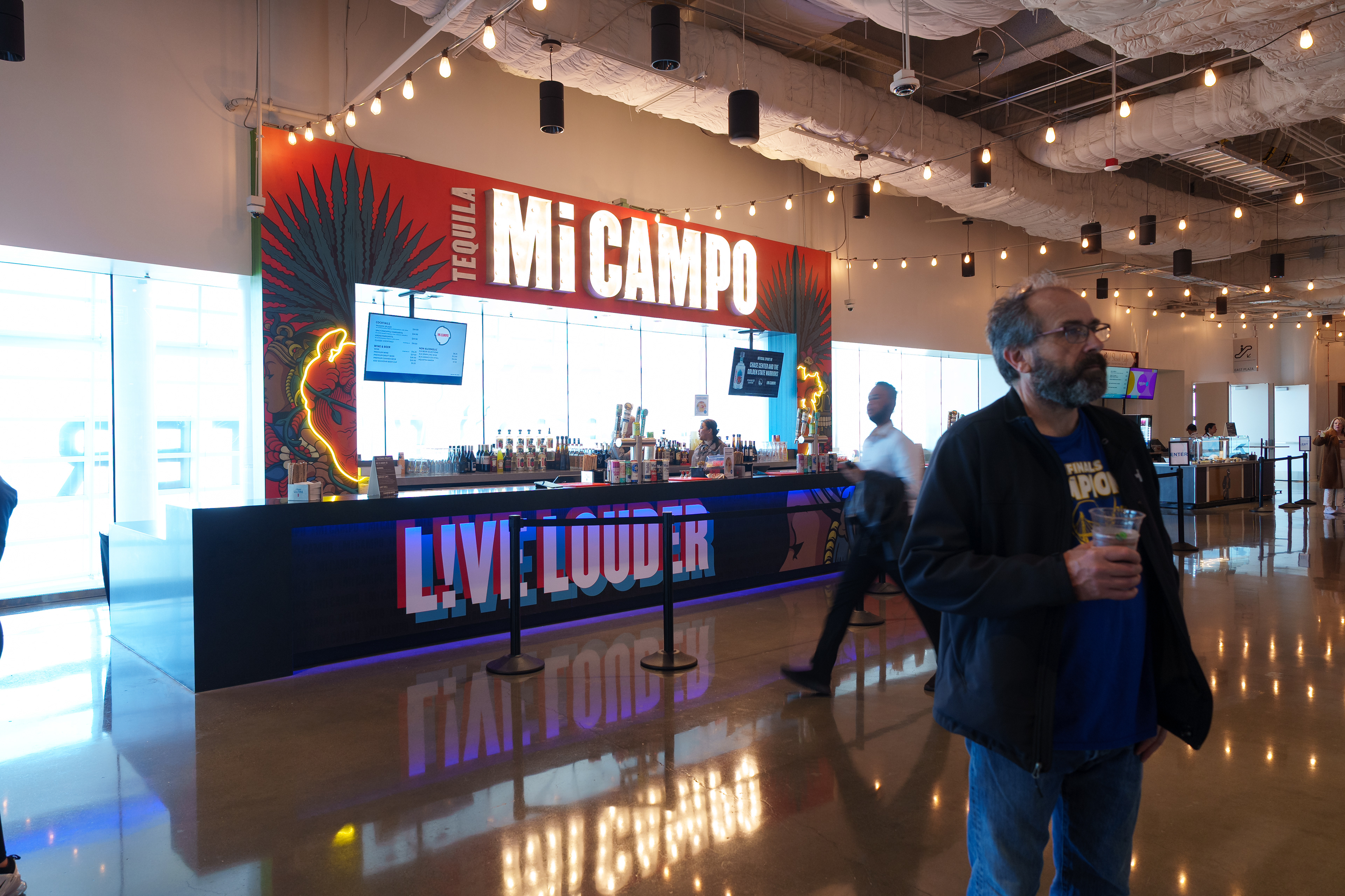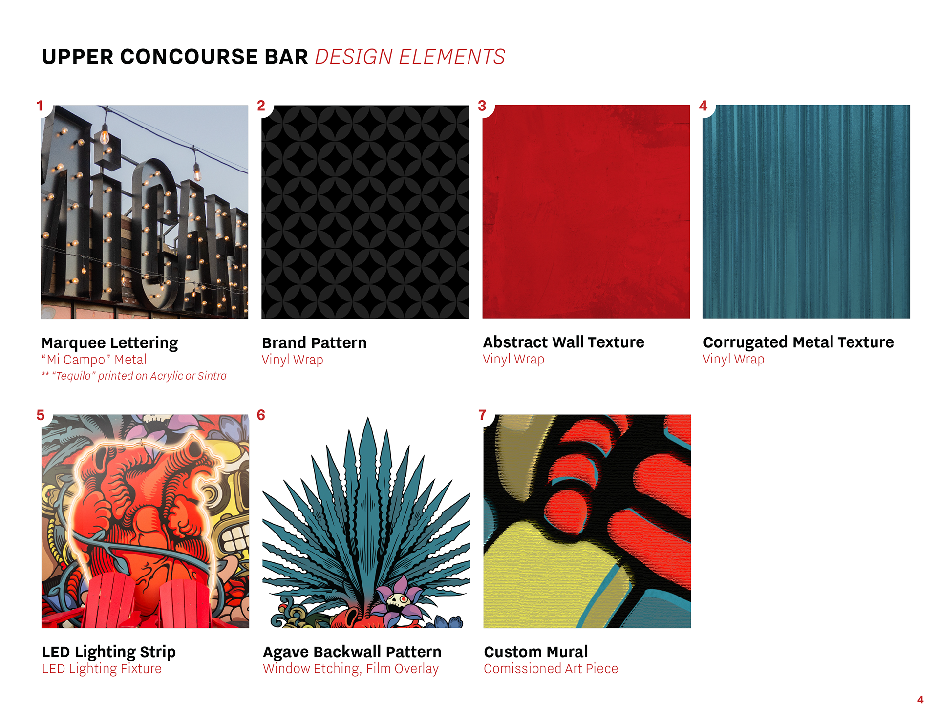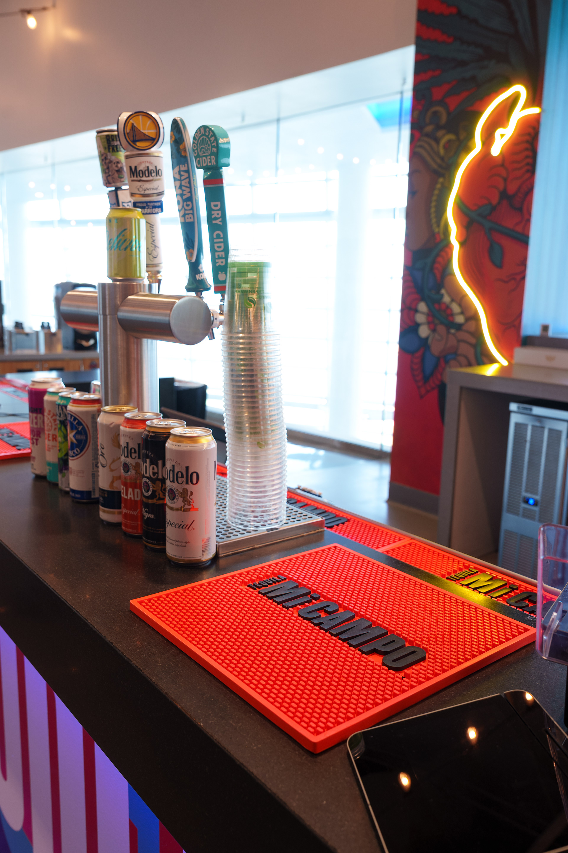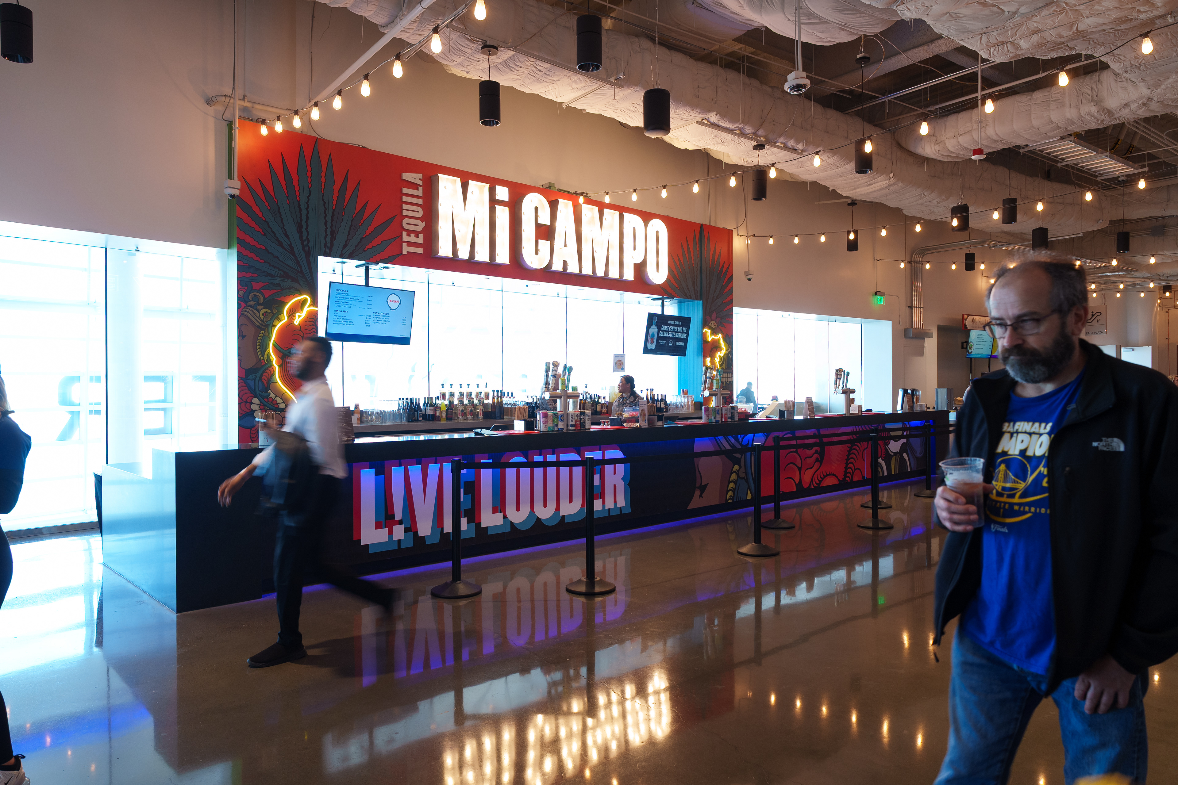 Brand the Chase Center Upper Concourse bar using Mi Campo Tequila's visual identity that strays away from the traditional tequila branding.